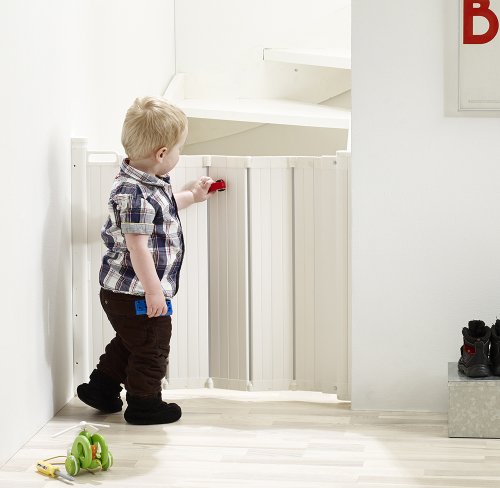 BabyDan Türschutzgitter Guard MeDas automatisch faltende Schutzgitter ist eine Weltneuheit. Es faltet sich automatisch zurück und ist fast nicht sichtbar, wenn es nicht benötigt wird. Somit ist es auch ideal für enge Räume. Dieses tolle Schutzgitter passt für schmale sowie breite Öffnungen.Merkmale des BabyDan Schutzgitters:sehr flexibelkann außen oder innen an Türöffnungen befestigt werdenMontage innen am Türrahmen von 64,5 – 89 cmMontage außen am Türrahmen 55-79,5 cm2-Wege-Schließmechanismusfür Türen oder Treppen geeignetHinweis: Eine Verlängerung ist separat erhältlich.