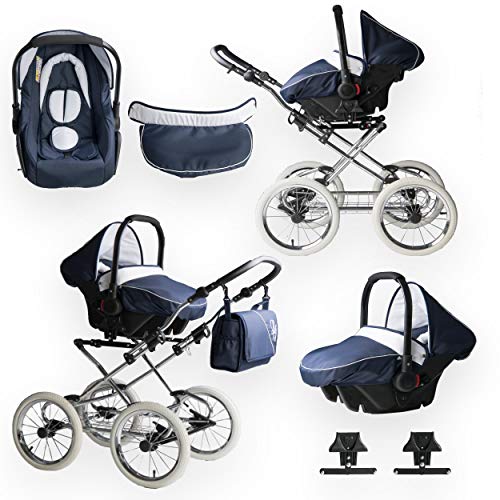 Unser BEBEBI LOVING 3 in 1 Kinderwagenset besteht aus: Babywanne, Sportwagen, Autositz, Gestell & Zubehör. Die Aufsätze können individuell in beide Richtungen (also in UND gegen die Fahrtrichtung) auf das Gestell gesetzt werden. Dank der 14 Zoll Räder ist dieser Kinderwagen auf jedem Untergrund der ideale Begleiter. Die Stoßdämpfer machen den LOVING besonders geeignet für Ausflüge auf unwegsamen Böden, im Gelände und sogar auf Splitt!Details KinderwagenaufsatzIn Fahr- & gegen Fahrtrichtung montierbar verstellbare und abnehmbare SonnenhaubeKomfortpolsterung des Innenraums aus kuschelweicher Baumwolleergonomischer, in die Sonnenhaube integrierter TragegriffFußabdeckung inklusiveDetails Autositz ECE R 44 / 04 (Prüfsiegel)zugelassen für den Straßenverkehr nach § 21 der StVOInkl. Fußabdeckung & verstellbarer Sonnenhaubegepolsterter 3-Punkt-Sicherheitsgurt; 2-fach in der Höhe verstellbarstufenlose Einstellung des Gurtumfangs möglichBezug handwaschbar, da komplett abnehmbarDetails BuggyIn Fahr- und gegen Fahrtrichtung montierbarverstellbare Sonnenhaube mit verschließbarem AußenfachMehrstufig verstellbare RückenlehneSchlafposition möglichverstellbare Fußablage mit SchutzbezugGepolsterter 5-Punkt SicherheitsgurtAbnehmbarer Sicherheitsbügel (Rausfallschutz) Details Gestelläußerst stabiles Gestell aus einer Aluminium/Stahl-LegierungKomfort-Fahrwerk mit regelbarer FederungRäder: ca. 38 cmLeichtgängige Sicherheitsbremsebesonders angenehmer Soft-Touch-Schiebegriff; mehrfach höhenverstellbar (s.Oben)geräumiger und abnehmbarer Einkaufskorb unter den Aufsätzen