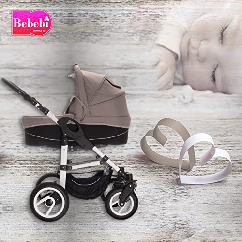 Unser BEBEBI® PARIS 3in1 Kinderwagenset besteht aus: Babywanne, Sportwagen, Autositz, Gestell & Zubehör. Die Aufsätze können individuell in beide Richtungen (also in UND gegen die Fahrtrichtung) auf das Gestell gesetzt werden. Die Schwenkräder sorgen für eine besonders gute Manövrierfähigkeit in der Stadt. Die Stoßdämpfer und die Härteverstellung im hinteren Bereich machen den PARIS auch und besonders geeignet für Ausflüge auf unwegsamen Böden, im Gelände und sogar auf Splitt!Details KinderwagenaufsatzIn Fahr- & gegen Fahrtrichtung montierbar verstellbare und abnehmbare SonnenhaubeKomfortpolsterung des Innenraums aus kuschelweicher Baumwolleergonomischer, in die Sonnenhaube integrierter TragegriffFußabdeckung inklusiveDetails Autositz ECE R 44 / 04 (Prüfsiegel)zugelassen für den Straßenverkehr nach § 21 der StVOverstellbarer Sonnenhaubegepolsterter 3-Punkt-Sicherheitsgurt; 2-fach in der Höhe verstellbarstufenlose Einstellung des Gurtumfangs möglichBezug handwaschbar, da komplett abnehmbarDetails BuggyIn Fahr- und gegen Fahrtrichtung montierbarverstellbare SonnenhaubeMehrstufig verstellbare RückenlehneSchlafposition möglichverstellbare Fußablage mit SchutzbezugGepolsterter 5-Punkt SicherheitsgurtAbnehmbarer Sicherheitsbügel (Rausfallschutz)Details Gestelläußerst stabiles Gestell aus einer Aluminium/Stahl-LegierungKomfort-Fahrwerk mit regelbarer FederungVorderräder: ca. 24 cm und um 360 Grad schwenkbar; inklusive FeststellfunktionHinterräder: ca. 30 cmLeichtgängige Sicherheitsbremsebesonders angenehmer Schiebegriff; mehrfach höhenverstellbargeräumiger und abnehmbarer Einkaufskorb unter den AufsätzenAllgemeinesTextilmaterialien sind speziell für Kinderwagen entwickelt worden
