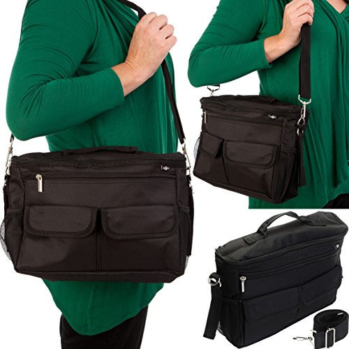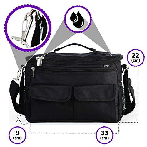 EINFACH BEFESTIGEN, ANPASSEN & SCHON KANN ES LOSGEHEN!Nachdem wir zahlreiche klebrige, pampige, schmutzige & feuchte Dinge mit uns herum getragen haben, entwickelten wir unseren abwischbaren Anti-Schmutz Buggy und Kinderwagen OrganizerBTR Kinderwagen Organizer Eigenschaften:ABDECKUNG MIT BEIDSEITIGEM REISSVERSCHLUSS- Damit ist Ihr Inhalt trocken & sicher. Unsere EINZIGARTIGE Art Ihre Sachen SICHER ABZUDECKEN – Ideal um kleine Hände & neugierige Blicke fernzuhalten!ABWISCHBARES MATERIAL- ANTI-SCHMUTZ Lösung, damit die Tasche sauber bleibt. Einfach abwischen & sie ist so gut wie neu!1 INNENTASCHE OBEN- so können Sie Ihr Portemonnaie oder Handy getrennt aufbewahren & von schmutzigen Bereichen fernhalten – keine extra Ritzen oder Falten in den Taschen, wo Schmutz lauern kann5 AUSSENTASCHEN- 2 Taschen mit Druckknopf, 2 seitliche Netztaschen und 1 Tasche hinten über die ganze Länge sorgen für Ordnung2 Klettgurte- unsere Kinderwagentasche sitzt fest & lässt sich schnell befestigen/abnehmen. Für Kinderwagen mit 1 oder 2 Griffen2 KINDERWAGEN KARABINER GESCHENKT- befestigen Sie Ihre Einkäufe problemlos am KinderwagenABNEHMBARER SCHULTERGURT- damit Sie die Buggy Tasche überall mitnehmen könnenL:33cm x B:9cm x H:22cmUnsere Kunden sagen:“Warum habe ich mir so etwas nicht schon früher zugelegt?““Tolle Tasche, ich liebe sie und nehme sie ständig. Es passt total viel hinein und sie lässt sich ganz einfach am Kinderwagen befestigen“Setzen Sie der Zeit ein Ende, in der Sie minutenlang in Ihrer großen Tasche wühlen oder zu viele Dinge im unteren Bereich Ihres Kinderwagens transportieren mussten. Nutzen Sie den Platz am Kinderwagen ideal mit unserem BTR ANTI-SCHMUTZ Kinderwagen Organizer Taschen