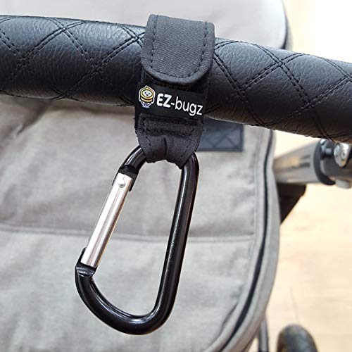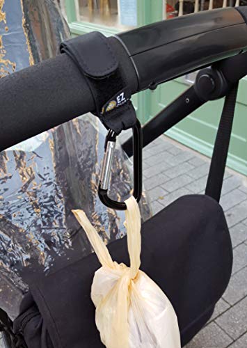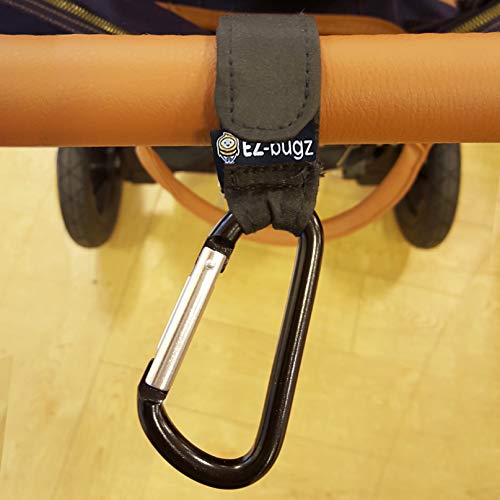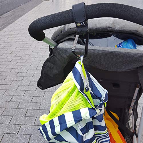 Eine einfache & schnelle Möglichkeit Ihre Taschen & kleinere Gegenstände am Kinderwagen, Einkaufswagen, an der Autolehne und vielem mehr zu befestigen! Sie haben im Supermarkt zu viel gekauft und keinen Platz im Kinderwagen, um den Einkauf nach Hause zu transportieren? Ihr Liebling ist eingeschlafen und Ihre Taschen passen nicht in den Korb unterm Kinderwagen? Sie haben schmutzige Windeln und dreckige Kleidung, die Sie nicht mit anderen Dingen im Kinderwagenkorb verstauen wollen? Dann benötigen Sie die EZ-Bugz Kinderwagenhaken 2er Packung! * Hilft dabei Ihre Hände frei zu halten; einfaches Befestigen & Entfernen, damit Sie sich voll auf den Kinderwagen konzentrieren können * Haltbar & Stark; die Haken sind nicht aus Plastik und verfügen über einen Mikrofaser-Klettverschlussgurt mit 8cm großen Aluminiumhaken, die bis zu 5kg pro Haken tragen * Diskret & vielseitig; die Haken im einfachen schwarz-gehaltenen Design können auch an Rollstühlen, Einkaufswagen, Autokopflehnen und Fahrrädern verwendet werden. * Eine tolle Geschenkidee: Ein hervorragendes Geschenk zur Babyparty oder einfach für einen Freund * Ein Must-Have für alle Eltern, die viel unterwegs sind! Unsere Kinderwagenhaken sind eine schnelle und einfache Möglichkeit, um Taschen und andere kleinere Gegenstände am Kinderwagen, Einkaufswagen, der Autolehne u.v.m. zu befestigen…Sie verstehen, was wir meinen: Die Haken sind sehr vielseitig! Und am aller besten: Da die Anbringung so kinderleicht ist, sind die Haken sofort eisatzbereit, wenn sie bei Ihnen eintreffen. Bitte achten Sie darauf, dass das Gewicht gleichmäßig verteilt ist und Sie den Kinderwagen nicht überladen, damit Sie und Ihr kleiner Liebling so sicher wie möglich sind. Bitte entfernen Sie außerdem sämtliche Gegenstände von den Haken, bevor Sie Ihr Kind aus dem Kinderwagen heben.