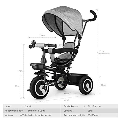 Fascol setzt die Sicherheit und das innovative Design Konzept auf den ersten Platz und fördert immer den gesunden, selbstbewussten und energischen Lebensstil. Marke: Fascol Kinder Dreirad Informationen: MAX Belastbarkeit ist:35kg Geeignetes Alter: 12 Monate -5 Jahre alt Empfohlene Kinder Höhe: 85CM-120CM dreirad kinderwagen größe: 103 * 73 * 48 / cm Verpackungsgröße: 58 * 38 * 37 / CM Bruttogewicht: 11 KG, Nettogewicht: 10 KG Material: Umweltschutz Stahl + ABS Plastik + Umweltschutz ti Leer Zertifizierung: Europäische CE-Zertifizierung, die USA ASTMF-Zertifizierung Dreirad Details: 1. Verstellbarer Lenker: Der Seitenrudergriff des Babys frei, der Lenker unbegrenzte Position, um das Niveau einzustellen, entsprechend den Notwendigkeiten des Babys frei, um sich anzupassen. 2. verstellbare dreirad mit dach: Je nach dem Winkel der Wetterregulation, Lassen Sie Baby den Sonnenschein genießen, die Schönheit der Landschaft sehen. 3.Aktualisierung Einstellbare Baby Fußstütze: Passen Sie sich an die Bedürfnisse des Babys an. Hinweis: 1. Bitte werden Sie von einem Erwachsenen begleitet 2. Bitte ziehen Sie die Schrauben regelmäßig fest Zubehör: 1 x Dreirad 1 x Bedienungsanleitung 1 x Kit