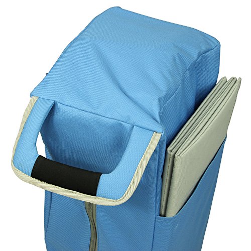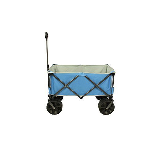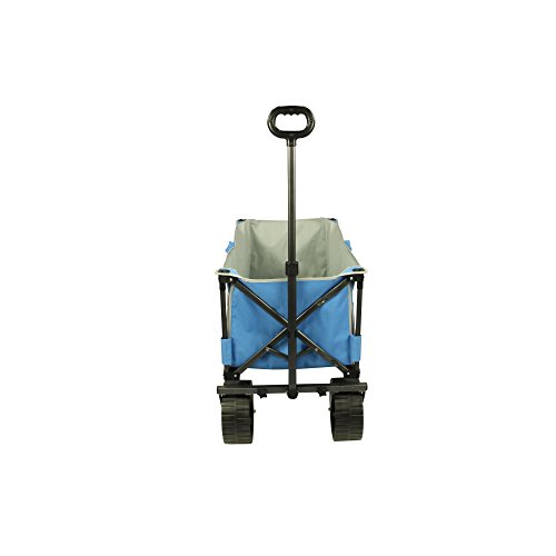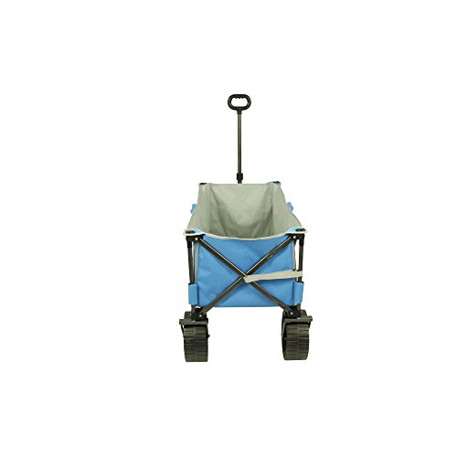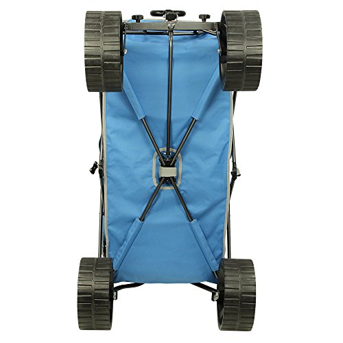 Fridani BTB 100 – faltbarer Bollerwagen, Strandwagen, Handkarre Ob beim Camping, Angeln, im heimischen Garten, auf Ihrem Picknick Ausflug, der nächsten Festival Party oder Zuhause – dieser klappbare Bollerwagen ist Ihre ideale, mobile Transporthilfe. Transportieren Sie Getränkekisten, Gepäck, Einkäufe, Garten-Werkzeug oder die Kinder ganz bequem von A nach B. Dank des faltbaren Gestells wird aus einem kleinen Paket ein großes Transport Wunder. Mit der Teleskop Deichsel und einen runden Voll-Griff ziehen Sie mühelose die geladene Last und das auch über weitere Strecken. Mit den robusten Reifen fahren Sie ohne Probleme auf den meisten Untergründen. Dieser Wagen ist besonders für den Gebrauch auf sandigem Boden wie z.B. am Strand geeignet, da er große Reifen besitzt. Innen ist der Handwagen mit einem beschichteten Material ausgekleidet. Dieses ist abwaschbar und sehr einfach zu reinigen. Der mitgelieferte Boden wird einfach ausgeklappt und hineingelegt und ermöglicht eine plane Ablagefläche oder Sitzfläche für Kinder. Zusammengeklappt wird der Wagen von einer Transport-Hülle geschützt in der auch der Einlegeboden seitlich seinen Platz findet. Fridani Bollerwagen sind in zwei Ausführungen erhältlich:BTG 90 (Grün) – BTB 100 (Blau mit extra dicken Sandreifen). Faltbares StahlgestängeDas Grundgerüst für diesen klappbaren Bollerwagen bildet das lackierte Stahlrohr-Gestänge. Dies ist sekundenschnell aufgestellt und genauso kinderleicht und schnell wieder zusammengefaltet. Die querverlaufenden Streben sind aus dem gleichen Material hergestellt. Durch die Belastbarkeit der Rahmenkonstruktion transportiert der Handwagen alles sicher zu seinem Ziel. Robuster BezugDer Bezug ist aus robustem und leicht zu reinigendem 600D Oxford Polyester gefertigt worden. Eingefasst wurde dieses mit einem Textilband. Das Innenmaterial ist besch