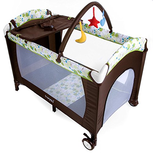 Details für Kinderreisebett CPL02- Einfach zu bedienender Klappmechanismus – Kompakte Abmessungen zusammengeklappt – Seitliches Sicherheitsnetz für optimale Luftzirkulation – Praktischer Reisebett-Einhang mit Einhängeclips für Schlafposition mittlerer Höhe – Zwei arretierbare Rollen für einen leichteren Transport im aufgebauten Zustand – Wickelauflage für Säuglinge – Spielbogen mit bunten Sternen – Gepolsterte Ränder und abgerundete Ecken – Abwaschbarer Nylonbezug – Für Kinder bis zum Alter von 36 Monaten kleiner als 89 cm oder für ein maximales Gewicht von ca. 15kgAchtung: Um mögliche Verletzungen durch Verheddern zu verhindern, ist dieses Spielzeug zu entfernen, wenn das Kind beginnt auf allen Vieren zu krabbeln.Material: – Bezug: 100% Polyester – Handwäsche – alle Bezüge 30°-WaschbarTextile Rohstoff-zusammensetzung: – 100% PolyesterAltersstufe: – für Kinder bis zum Alter von 36 Monaten, kleiner als 89 cm oder für ein maximales Gewicht von ca. 15kgAbmessungen: – Wickelauflage: ca. 63 x 34,5 cm (L x B) – Liegefläche: ca. 110 x 53 cm (L x B) – Kinderreisebett: ca. 121 x 68 x 87 cm (L x B x H)Lieferumfang: – Kindereisebett (CPL02) – Transporttasche – praktischer Reisebett Einhang – Wickelauflage für Säuglinge – Spielbogen mit bunten Sternen