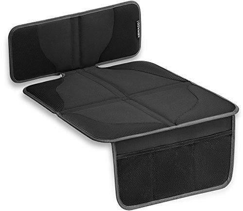 Zuverlässiger Schutz vor Druckstellen und Kratzern, perfekter Halt für Kindersitze, Autositzerhöhung und Babyschale Sie suchen eine Sitzauflage, die Ihre Autositze zuverlässig vor Druckstellen und Kratzern schützt? Mit der Kindersitzunterlage von Kewago bleiben die Rücksitze Ihres Fahrzeuges auch nach langjähriger Nutzung des Kindersitzes in einem einwandfreien Zustand. Die wasser- und schmutzabweisende Oberseite aus Rip Stop Material hält Flecken und Krümel von Ihren Sitzen fern. Eine Füllung aus verdichtetem Kunststoffschaum verhindert zuverlässig, dass sich der Kindersitz auf die Autopolster durchdrückt. Optimaler Halt durch die rutschfeste Anti-Slip Unterseite und die Extra-Grip Applikationen. Entspannt im Auto unterwegs mit Kindern Die Kewago Autositzauflage bietet ein Höchstmaß an Stabilität und Sicherheit für Ihr Kind während der Fahrt. Die Kindersitzunterlage von Kewago ist für Babyschalen und Autokindersitze aller Gruppen geeignet, auch für Reboarder. Dank der Aussparungen für die ISOFIX-Konnektoren können Sie die Unterlage problemlos für Sitze mit dem ISOFIX-System benutzen. Praktisch für unterwegs: Trinkflasche, Stifte, Taschentücher und andere kleine Reiseutensilien können bequem und für Ihr Kind stets griffbereit in der integrierten Vordertasche verstaut werden. Verarbeitung und Design Das moderne und elegante Design der Kindersitzunterlage macht sich in jedem Fahrzeug gut. Dank Premium Material und hochwertiger Verarbeitung werden Sie an dieser Sitzunterlage lange Freude haben. Bestellen Sie jetzt die hochwertige Kindersitzunterlage von Kewago! Kewago – easy on the road