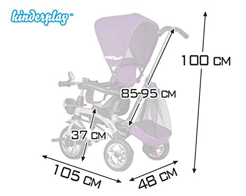DREIRAD KINDERDREIRAD Produktbeschreibungen Für kleine und große Kinder: Durch seine Multifunktionalität ermöglicht das moderne 4in1 Kinderdreirad, dass Sie und Ihr Kind einen langfristigen Begleiter an Ihrer Seite haben und es mit Ihrem Kind heranwachsen kann. Komfort und Spaß kombinieren: Egal ob Sie den Komfort des klassischen Kinderschiebewagens genießen wollen, oder das Vergnügen eines sportlichen Dreirads erleben möchten – Der Kesser 5 in 1 Kinderdreirad macht es möglich! Mit nur einem Produkt lernen Kinder im Laufe von 1,5 bis 4 Jahren Treten, Laufen und Radfahren – das lohnt sich! Dank der hohen Qualität ist unser Dreirad langlebig und wird über Jahre ein zuverlässiger Begleiter Ihrer Kinder sein und mit ihnen zusammen wachsen. Es hat einen positiven Einfluss auf die Kondition und erleichtert das spätere Umsteigen auf ein „echtes“ Fahrrad. BESONDERHEITEN: Katalognummer: KP0566VIO Marke: Kinderplay Schöner, stabiler Kinderdreirad klappbares Sonnendach mit durchsichtigem Netz für gute Durchlüftung abnehmbare Handtasche mit Reißverschluss 3 Punkt Sicherheitsgurt weich gepolsterter Sitz rutschfeste Lenkergriffe Schubstange in der Höhe 3-fach verstellbar Schiebestange mit Lenkfunktion Barriere zum aufklappen für bequemen Ein/Ausstieg für Kinder zwischen 1,5 bis 4 Jahren und max. 25kg geeignet Lenkradklingel Weiche Gummiräder Stahlrohre-PERFEKT AUSGESTATTET 4-fach einsetzbar: als Kinderwagen, Lauflernhilfe und Dreirad mit und ohne Anschub ACHTUNG: Benutzung nur unter Aufsicht eines Erwachsenen! Zustand: Neu und Originalverpackt Certyfikat CE TECHNISCHEN DATEN Moderne Design:Einfach und schnell (Auf- und Abbaubar) Gesamtmaße:105 x 48 x 100 cm Länge Schubstange:85 – 90 – 95 cm (3 Stufen) Die Rückenhöhe beträgt:ca. 35 cm Produktgewicht:ca. 13 kg