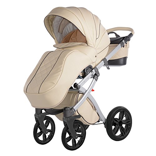 Knorr-Baby Kombi-Kinderwagen Alive Pure Gestell mit Luftkammerrädern und großen abwaschbarem Gepäckkorb Easy-Klick-Off-System Aluminiumgestell mit höhenverstellbarem Schiebegriff verstellbarer Teleskop-Gestell Federung zur Einstellung des Härtegrads (weich und harte Federung) für verschiedenen Untergrund große kugelgelagerte Luftkammerräder hinten ca. 30 cm 360° schwenkbare und feststellbare Luftkammerräder vorne ca. 26 cm bequeme Stabbremse zum feststellen Gestell leicht zusammenklappbar abwaschbarer Gepäckkorb – hygienefreundlich Babywanne mit Verdeck und Decke aufstellbarer Wannenboden im Kopfbereich, damit das Baby bequem auch höher liegen kann – babyfreundlich Innenbezug abnehmbar und waschbar – hygienefreundlichen Babywanne abnehmbar mit Wippfunktion auf dem Boden, Unterteil aus Kunststoff weich gepolsterter Innenausschlag und gut gepolsterte Schutzdecke klappbares Verdeck mit Tragegriff das Verdeck ist durch Abnehmen der Stoffteile in ein luftiges Sommerverdeck umbaubar Sportwagenaufsatz mit Beindecke klappbares Verdeck mit Sicht und Belüftungsöffnungen Verdeck mit herausklappbarem Wetterschutz mehrfach verstellbare Rückenlehne Fußstütze mehrfach verstellbar und mit abwaschbarem hochwertigem Kunstleder ausgestattet – hygienefreundlich, herausnehmbare Sitzauflage 5-Punkt Sicherheitsgurt mit zusätzlicher Riemen- und Verschlusspolsterung – babyfreundlich abnehmbarer Bauchbügel zum leichten Ein- und Aussteigen, abwaschbar – hygienefreundlich einfaches drehen des Sportwagenaufsatzes in zwei Blickrichtungen nach vorne und hinten Beindecke mit hochklappbarem Wetterschutz inklusive Durch diese vielen Extras kann der Sportwagen sowohl in Sommerausstattung als auch in der Winterausstattung verwendet werden. Im Lieferumfang enthalten: Gestell mit Luftkammerrädern Babywanne mit Wagendecke und Verdeck Sportwagensitz mit Sitzauflage und Verdeck Wickeltasche mit Wickelauflage Regenschutzfolie