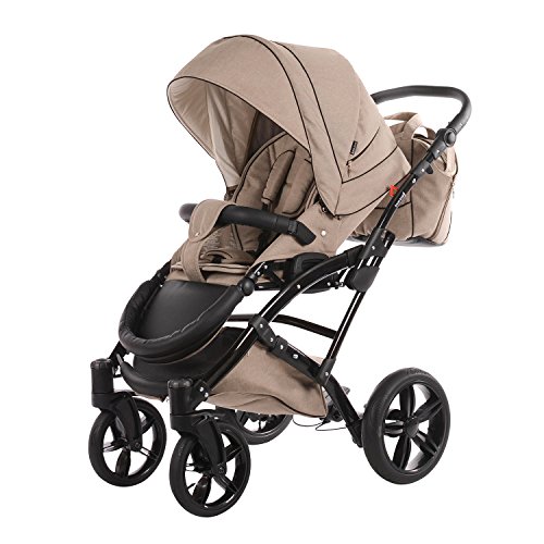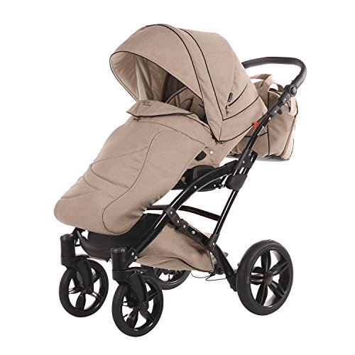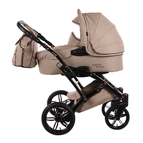 Knorr Baby Kombikinderwagen Voletto Emotion Voletto emotion – der moderne und multifunktionale Knorr Kinderwagen zeichnet sich durch hochwertige Stoffe in Melange-Optik aus. Die Babywanne ist mit einem teilbaren Verdeck ausgestattet, das sich mit wenigen Handgriffen bequem in eine sommerliche Cabriovariante verwandeln lässt. Das bequeme Easy-Click-System ermöglicht ein einfaches Wechseln der Aufsätze. Das Kinderwagen-Set beinhaltet Gestell mit Luftkammerrädern und Easy-Click-System Babywanne mit teilbarem Verdeck Sportwagensitz Wickeltasche mit Wickelunterlage Ablagekorb am Gestell Gestell Beschichtetes, hochwertiges Aluminiumgestell Große, kugelgelagerte Luftkammerräder Vorderräder schwenkund feststellbar Höhenverstellbarer Schiebegriff, ummantelt mit abwaschbarem, hochwertigem Kunstleder In hart und weich einstellbares Federungssystem Bequeme Fußbremse zum Feststellen Stabiler Ablagekorb am Gestell Easy-Click-System für einfaches Umsetzen der verschiedenen Aufsätze Leicht zusammenklappbar durch Komfort-Faltsystem Babywanne mit Verdeck und Schutzdecke Stoffbezüge aus hochwertigem, atmungsaktivem Material Bequemer Tragegriff am Verdeck Hochstellbare Matratze im Kopfbereich Geräuschlos verstellbares Verdeck Inklusive abnehmbarer Wannenabdeckung Innenbezug herausnehmbar und von Hand waschbar Wanne mit Wippfunktion Abnehmbares Verdeckteil, für luftige Cabrio-Variante Sportwagen mit Verdeck und Beindecke 5-Punkt-Sicherheitsgurt mit Gurtpolsterung Sportwagenaufsatz in beide Richtungen nutzbar Mehrfach verstellbare Fußstütze und Rückenlehne Verstellbares und abnehmbares Verdeck Abnehmbares Verdeckteil, für luftige Cabrio-Variante Inklusive Beindecke und abnehmbarem Bauchbügel Abmessungen: Gestell: LxH: ca. 110 x 106 cm, Gewicht ca. 10,5 kg Gestell zusammengeklappt: LxBxH: ca. 99 x 65 x 42 cm Babywanne: LxBxH: ca. 87 x 43 x 66 cm, Gewicht: ca. 5,5 kg Liegefläche Babywanne: LxB: ca. 81 x 33 cm Sportwagenaufsatz: LxBxH: 100 x 40 x 65 cm, Gewicht: ca. 5,5 kg