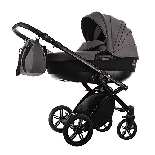 Gestell mit Luftkammerrädern und großen Gepäckkorb und Schiebegriff aus Kunstleder Aluminiumgestell mit höhenverstellbarem Schiebegriff aus hochwertigem hochwertigem Kunstleder abwaschbar – hygienefreundlich verstellbarer Teleskop-Gestell Federung zur Einstellung des Härtegrads (weich und harte Federung) für verschiedenen Untergrund große kugelgelagerte Luftkammerrädern hinten ca. 30 cm 360° schwenkbare und feststellbare Luftkammerräder vorne ca. 26 cm bequeme Stabbremse zum feststellen Gestell leicht zusammenklappbar abwaschbarer Gepäckkorb – hygienefreundlich Babywanne mit Verdeck und Decke aufstellbarer Wannenboden im Kopfbereich, damit das Baby bequem auch höher liegen kann – babyfreundlich Innenbezug abnehmbar und waschbar – hygienefreundlichen Babywanne abnehmbar mit Wippfunktion auf dem Boden, Unterteil aus Kunststoff weich gepolsterter Innenausschlag und gut gepolsterer Schutzdecke klappbares Verdeck mit Tragegriff das Verdeck ist durch Abnehmen der Stoffteile in ein luftiges Sommerverdeck umbaubar Sportwagenaufsatz mit Beindecke klappbares Verdeck mit Sicht und Belüftungsöffnungen Verdeck mit herausklappbarem Wetterschutz mehrfach verstellbare Rückenlehne Fußstütze mehrfach verstellbar u. mit abwaschbarem hochwertigem Kunstleder ausgestattet – hygienefreundlich, herausnehmbare Sitzauflage 5-Punkt Sicherheitsgurt mit zusätzlicher Riemen- u. Verschlusspolsterung-babyfreundlich abnehmbarer Bauchbügel zum leichten ein- und aussteigen abwaschbar – hygienefreundlich einfaches drehen des Sportwagenaufsatzes in zwei Blickrichtungen nach vorne und hinten Beindecke mit hochklappbarem Wetterschutz inklusive Durch diesen vielen Extras kann der Sportwagen sowohl in Sommerausstattung als auch in der Winterausstattung verwendet werden. Im Lieferumfang enthalten: Gestell mit Luftkammerrädern und abwaschbaren Korb und hochwertigem Kunstledergriff Babywanne mit Wagendecke und Verdeck Sportwagensitz mit Sitzauflage und Verdeck Wickeltasche mit Wickelauflage Regenschutzfolie