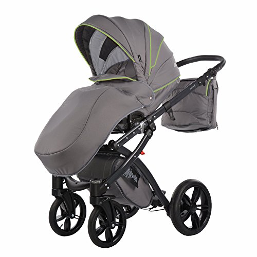 Knorr-Baby Be Carbon – sportlicher Kombikinderwagen im Carbon – Look Be Carbon – Man sieht Ihm die Innovation sofort an. Allein die Optik der Kohlefaser mit ihren unterschiedlichen Gewebelagen und Richtungen ist schon faszinierend. Gestell mit Easy-Click-Off-System: hochwertiges Graphit-Gestell mit verstellbarem Schiebegriff 4-fach gefedert durch Spiralfedern bequeme Feststellbremse inkl. Gestelltasche Easy-Click-Off-System für ein bequemes Wechseln der Kinderwagenaufsätze Sportwagenaufsatz mit Kniedecke: klappbares Verdeck, abnehmbar, mit Sicht- und Belüftungsöffnungen ausgestattet 4-fach verstellbare Rückenlehne (von Sitz- bis Liegeposition) Fußstütze im Carbon-Look und Sicherheitsbügel 5-Punkt Sicherheitsgurt mit zusätzlicher Gurtpolsterung abnehmbarer Bauchbügel zum leichten Ein- und Aussteigen Inklusive waschbarer Sitzeinlage aus weichem Stoff und Beindecke Easy-Click-Off-System für einfaches Abnehmen und Wenden des Sportwagenaufsatzes Das Kinderwagen-Set beinhaltet: Gestell mit Luftkammerrädern Große hochstellbare Babywanneim Carbon-Look mit Wagendecke (Innenmaß: 84×34 cm) Sportwagen mit Sitzeinlage Wickelkoffer mit Wickelunterlage herausnehmbare Gestelltasche Regenschutzfolie Mückenschutz – mit Reißverschluss an Babywanne zu befestigen Optional bestellbar (nicht im Lieferumfang): Adapter für die Autositze Nr. 35093 Isofix Base für das Auto Nr. 35095
