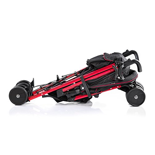 Der Volkswagen Kinder-Buggy ÔÇ£GTIÔÇØ ist der ideale Begleiter für die Familie. Er lässt sich schnell und einfach kompakt zusammenklappen. Das verlängerbare Verdeck gibt dem Baby mehr Ruhe zum Entspannen. Lärm, Licht und Wetter werden durch das mit einem Handgriff vorklappbare Dach absorbiert. Der abnehmbare Frontbügel und der Einkaufskorb gehören zur Grundausstattung. Die qualitativ hochwertigen Stoffbezüge und die Räder sind mit dem markanten Volkswagen-Logo gekennzeichnet. Verstellbare Fußstütze Komfortable Federung 360 Grad drehbare und feststellbare Vorderräder, für optimalen Fahrkomfort Schiebehöhe: 105 cm Gewicht: 8,8 kg Zusammengeklappt: 107 x 26,5 x 35 cm Aufgebaut: 105 x 81 x 51 cm Räder vorne und hinten 7 Inch