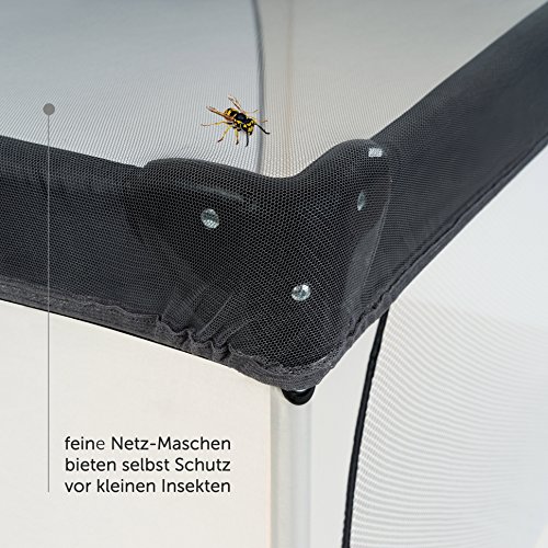 Universal Moskitonetz / Insektennetz | 3in1: für Kinderwagen, Buggys und Reisebetten Schützt Ihr Kind vor Insektenstichen und ermöglicht einen ungestörten, erholsamen Schlaf im Freien VORTEILE: Schützt zuverlässig: die feinen Maschen halten selbst kleine Insekten von Ihrem Kind zurück Schnell einsatzbereit: spannen Sie das Mücken-Netz in wenigen Sekunden über Ihren Kinderwagen – ein Gummizug bietet den notwendigen Halt Klein verstaubar: ein Insektenschutz, den Sie immer dabei haben – sehr klein faltbar und gerade mal 50g schwer Reißfest: das robuste Polyester-Netzgewebe hält einiges aus und garantiert eine lange Lebensdauer Universell: passt auf fast Alles – egal ob Kinderwagen, Buggy oder Babybett ZUVERLÄSSIGER SCHUTZ VOR INSEKTENSTICHEN Machen Sie sich keine Sorgen um gefährliche Insekten. Mit diesem Netz kann Ihr Liebling beruhigt im Freien schlafen. Die feinen Maschen halten Wespen, Mücken oder Bienen auf Abstand. Der Rundum-Gummizug dichtet Schlupflöcher zuverlässig ab. Durch das graue Netzgewebe sieht das Netz auf jedem Kinderwagen gut aus. Ihr Kind hat eine gute Sicht nach Draußen und die Luft kann ideal zirkulieren. Gleichzeitig schützt das Netz ein klein wenig vor Sonne und herumfliegenden Pollen und Blättern. 3IN1 – EIN MÜCKENNETZ FÜR ALLES Durch den Gummizug ist das Insektennetz sehr variabel einsetzbar. Egal ob Sie es für Ihren Kombi-Kinderwagen, für den leichten Reisebuggy oder das Reisebett verwenden möchten. Zusätzlich lässt es sich für Babywannen, Babyschalen, Stubenwagen, Baby-Wiegen und vieles mehr verwenden. Material: 100% Polyester Pflegehinweis: Maschinenwäsche bei 30° C, nicht trocknergeeignet