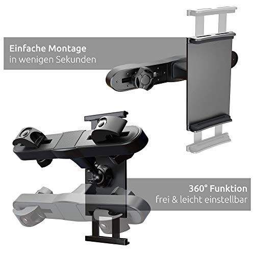 SICHER & WACKELFREI: Der robuste Halter und das drehbare Kugelgelenk haben Ihr iPad oder Galaxy Tab durch die hochwertige Bauweise immer fest im 360° Griff. BEQUEMES ENTERTAINMENT: Nie war es einfacher Ihr Fahrzeug unterwegs in ein Multimedia Kino zu verwandeln, dass Ihre Rückbank perfekt unterhält. KINDERLEICHTE MONTAGE: In wenigen Sekunden haben Sie die Handyhalterung an die Kopfstützen angebracht und können während der Fahrt von seiner Zuverlässigkeit profitieren. SCHONENDE VERARBEITUNG: Dank der Schaumstoff Polsterung werden sowohl Ihre Tablets wie auch Ihre Kopfstütze zuverlässig vor Kratzern geschützt. 100% ZUFRIEDEN: Ihr Wohlbefinden und Ihre Sicherheit haben für uns höchste Priorität. Bei jeglichen Problemen mit dem Tablethalter garantieren wir Ihnen eine zufrieden stellende Lösung. Kontaktieren Sie dafür jederzeit einfach unseren Rund-um-die-Uhr Kundenservice.