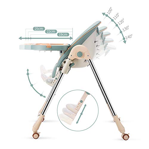 Das bequeme PU Leder Kissen sorgt für zusätzlichen Komfort und ist sehr einfach zu reinigen. Der abwaschbare Bezug des Kissens ist sehr strapazierfähig und langlebig. Das Design des Hochstuhls ist nicht nur funktional, sondern auch ansprechend und modern. Der grüne Farbton verleiht ihm eine fröhliche und kinderfreundliche Optik.