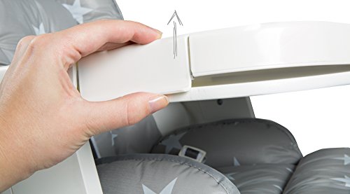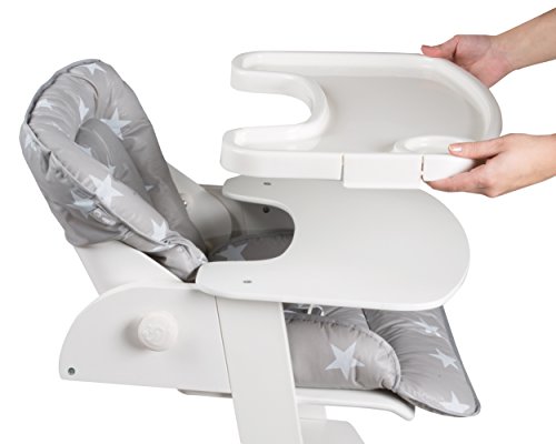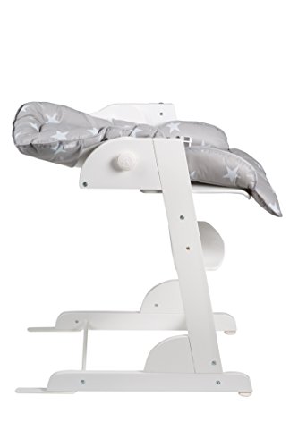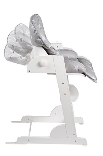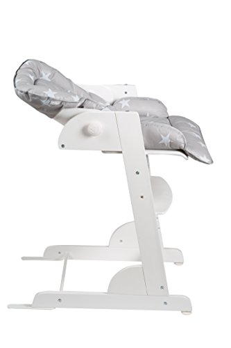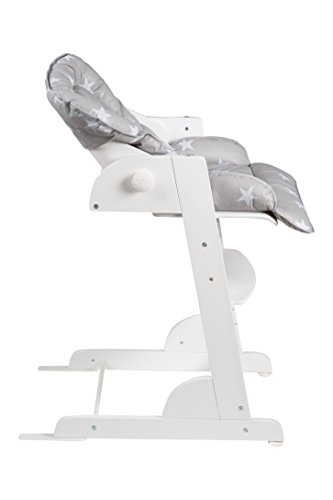 Roba Treppenhochstuhl Chill Up weiß mit Liege- und Sitzpolster Treppenhochstuhl Chill Up, weiß, L-Form, inkl. Liege- und Sitzpolster im Little Stars Design, Gesamthöhe: 95 cm, Höhe Essbrett: 76 cm, BxT (mit/ohne Verlängerung): 45×70/60cm, Sitzhöhe max./min.: 60/47 cm, Rückenlehne von Liege- bis Sitzposition verstellbar, 5-Punkt-Gurt, Kunststoffessbrett abnehmbar und spülmaschinengeeignet, Sitz- und Fußbrett höhenverstellbar Der mitwachsende Treppenhochstuhl Chill Up aus Holz bietet Ihrem Kind von klein auf bis ins Jugendalter ergonomischen, sicheren und angepassten Sitzkomfort mit einer langen Nutzungs- und Lebensdauer. Extra hoch und angepasst an gängige Tischhöhen findet Ihr Schützling mit dem Verwandlungskünstler überall Platz und nimmt während der Mahlzeiten aktiv am Familienleben teil. In der obersten Position startet der Stuhl mit verstellbarer Rückenlehne mit einer Liegeposition für die Kleinsten und 5-Punkt-Sicherheitsgurt oder aber auch mit spülmaschinengeeignetem Spiel- und Essbrett. Beides lässt sich im Handumdrehen befestigen und wieder abnehmen. Auch die Höhe der Sitz- und Fußplatte kann im Nu an die jeweilige Körpergröße angepasst werden. Somit wächst der Treppenhochstuhl ganz einfach von der Liegeposition über einen Kinderstuhl zum Jugendstuhl heran. Mit den Produkten von roba können Kinder ihre Welt entdecken und viele schöne gemeinsame Momente mit ihren Eltern und Spielgefährten erleben. Mehr über die Produkte und den Elternratgeber von roba erfahren Sie unter www.roba-kids.com. Material: Grundmaterial: Schichtholz, Material 2: Metall Textil: phthalatfreie Folie, Füllung: Polyestervlies, Beschaffenheit: bedruckt Alter des Kindes: ab 0 Monate Maximalgewicht:50 kg Artikelgewicht:8,30 Aufbaumaße Länge:45,00 cm Breite:70,00 cm Höhe:95,00 cm