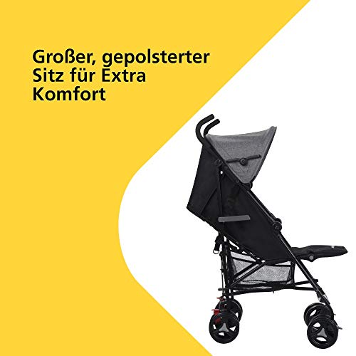Dieser kompakte und leichte Stadt-Buggy wiegt nur 6,6 kg und ist somit ein hervorragender Begleiter für unterwegs. Die große, gepolsterte Multipositions-Rückenlehne und die verstellbare Beinstütze sorgen dafür, dass Ihr Kind bequem sitzt und sich ausruhen kann, während Sie spazieren gehen oder einkaufen.