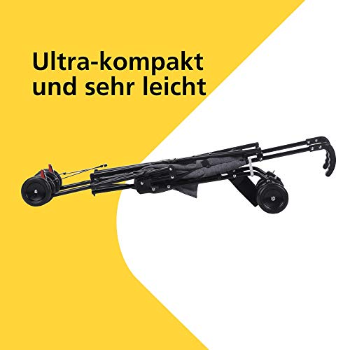 Einfacher Sitzbuggy mit Verdeck als idealer Reisebegleiter. Sehr schmal zusammenfaltbar und dank des Verdeckes ist der Sonnenschutz gleich inklusiv. Die wendigen Schwenkräder sind natürlich auch feststellbar.