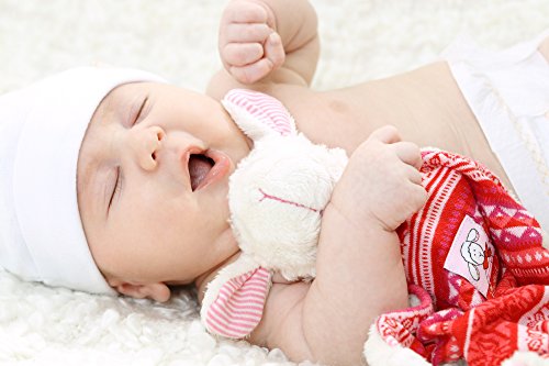 Sigikid 48173 – Schnuffeltuch Schnuggi Schmuseweich und anschmiegsam begleitet das freundliche Schäfchen 'Schnuggi' die Kleinsten ins Land der Träume. Nuckeltücher sind ein besonderes Stückchen Stoff zum Schnuffeln, Schmusen und Trösten für die ganz Kleinen. Erster Freund und unentbehrlicher Begleiter – oft bis über das Baby- und Kleinkindalter hinaus. Mit großen Ohren, Zipfeln und Knoten zum Erforschen und Nuckeln. Größe: 26 cm Obermaterial: Microfaserplüsch, Baumwolle. Füllung: Polyesterwatte Waschbar bei 30 °C