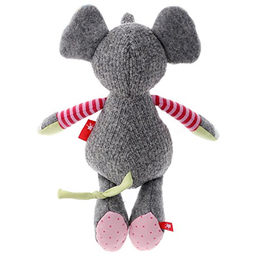 Farbe:Elefant Produktbeschreibung PATCHWORK SWEETYS erobern Kinderherzen im Sturm! Sie sind unvergleichlich kuschelig und schööööön bunt – so wie Kinder es eben lieben! Das Markenzeichen der außergewöhnlichen Schmusetiere: Farbenfroher Materialmix, bunte Streifen und tolle Muster kombiniert mit hochwertigen Plüschen. Umarmen, schmusen, hinter sich herziehen, überall hin mitnehmen, drücken, streicheln, Geheimnisse erzählen, Abenteuer erleben… – der drollige Sweety-Elefant macht das alles bedenkenlos mit. Der graue Kuschelplüsch und die vielen unterschiedlichen Strick- und Baumwollmaterialien machen das Rüsseltier zu einem unvergleichlich weichen Begleiter. Die langen Arme und Beine geben dem Tierchen den typischen sigikid-Schlenkertouch. Der Dickhäuter ist weich mit hygienischer Polyesterwatte gefüllt und im Po trägt er ein wenig Kunststoffgranulat – dadurch kann der Elefant prima sitzen. Das Kunststoffgranulat ist in ein zusätzliches Baumwollsäckchen eingenäht – so bleiben die Kügelchen garantiert an Ort und Stelle. Die schwarzen Kunststoffaugen sind mit Sperrscheiben auf der Rückseite fixiert. Um die Befestigung zu bestätigen, wird ein Zugtest durchgeführt. Dabei wird per Zuggerät für 10 Sekunden gezogen und somit die korrekte Fixierung bestätigt. Das Kuscheltier ist problemlos bei 30°C in der Waschmaschine waschbar und hält auch häufiger Wäsche stand. Alle Materialien sind durch ein akkreditiertes Prüfinstitut gemäß der Spielzeugrichtlinie 2009/48/EG überprüft. Der außergewöhnliche Elefant mit einer Größe von ca. 31 cm ist für Babys und Kinder ab Geburt geeignet. Warnhinweise Keine Angabe