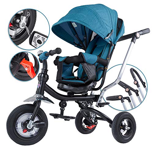 Der Spielwerk Kinderbuggy ist ein äußerst flexibler Kinderwagen, der sich an die Bedürfnisse Ihres wachsenden Kindes anpasst. Der Sicherheitsbügel am Sitz und die Schubstange können abmontiert werden, um das Dreirad an die Bedürfnisse Ihres Kindes anzupassen. Der Sitz ist um 360° drehbar, so dass Ihr Kind in jede Richtung schauen kann. Außerdem gibt es ein klappbares Sonnendach mit einem separat schließenden Lüftungsnetz und einem Sichtfenster auf das Kind.
