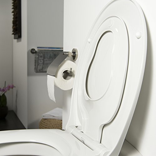 Der Toilettensitz Tulsa von Tiger mit einem zusätzlichen, kleineren Kindersitz ist aus unzerbrechlichem Thermoplast hergestellt. Der Sitz hat eine Absenkautomatik, die dafür sorgt, dass Deckel und Sitz sanft und leise schließen und eine Beschädigung der Keramik verhindert. Mit der integrierten Easy-Clean-Funktion lassen sich beide Toilettensitze einfach entfernen und erlaubt somit eine einfache Reinigung. Der Toilettensitz passt auf alle handelsüblichen Toiletten. Die Lieferung umfasst einen Toilettensitz und Montagezubehör. Material: Thermoplastisches ElastomerFarbe: WeißAbmessungen: 37,1 x 45 x 5 cm (B x T x H)Geeignet für den Einsatz in FeuchträumenToilettensitz mit Absenkautomatik: Sitz und Deckel schließen leise und sanftLeicht zu reinigen: Der Sitz ist leicht zu entfernen, was die Reinigung erleichtertMontagezubehör-Set aus EdelstahlDie Lieferung umfasst einen Toilettensitz und Montagezubehör
