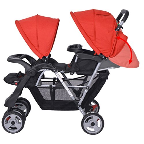 Farbe: Rot und Schwarz Material: Stahl + Oxfordgewebe Maße: 118 x 41 x 108 cm (L x B x H) Klappmaß: 120 x 57 x 44 cm (L x B x H) Sowohl Vorder- und Rückseite mit Verdecken Großer Korb Feststellbare, um 360 Grad schwenkbare Räder Geeignet für 1-2 Kinder mit einem Höchstgewicht von jeweils 15 kg Empfohlenes Alter: 6-36 Monate Material: Polyester: 100%
