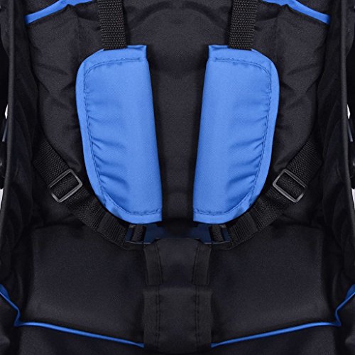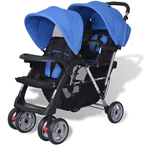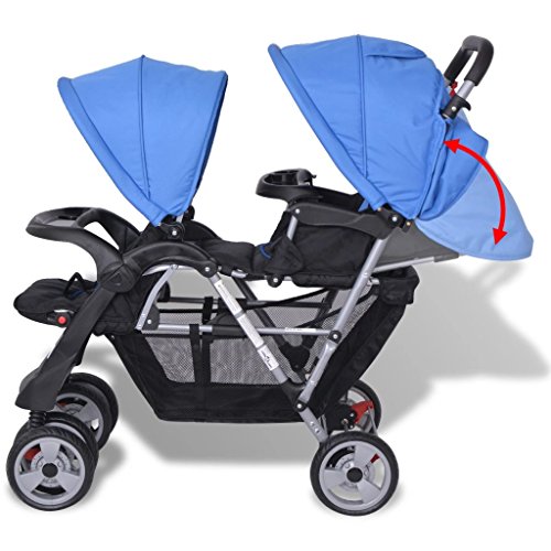 Farbe: Blau und Schwarz Material: Stahl + Oxfordgewebe Maße: 118 x 41 x 108 cm (L x B x H) Klappmaß: 120 x 57 x 44 cm (L x B x H) Sowohl Vorder- und Rückseite mit Verdecken Großer Korb Feststellbare, um 360 Grad schwenkbare Räder Geeignet für 1-2 Kinder mit einem Höchstgewicht von jeweils 15 kg Empfohlenes Alter: 6-36 Monate Material: Polyester: 100%